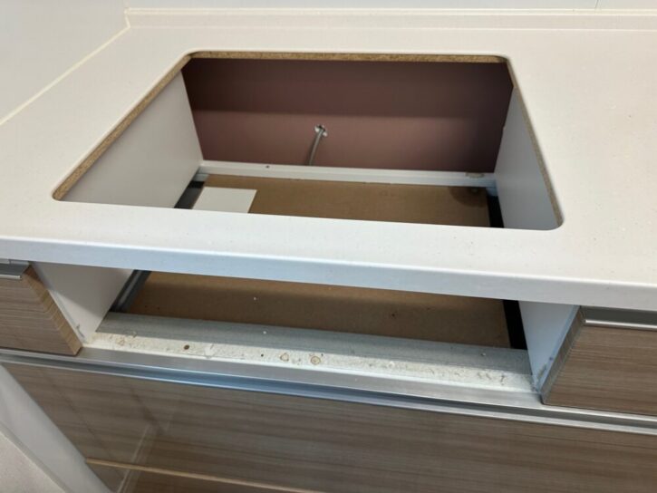 今回は、数年使用したキッチンにあるIH機器が故障したとのことで、交換工事へお伺いいたしました。交換工事の前には、機器の漏電や他の原因も考えられるため、お伺いし点検させていただきました。