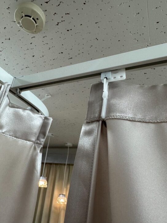 天井レールカーテンの施工中です。