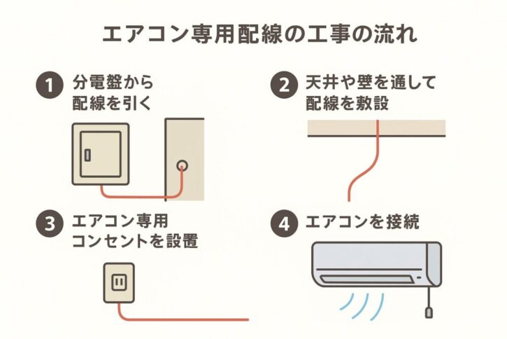 分電盤からエアコンへの配線は、どこへも分岐することなく、