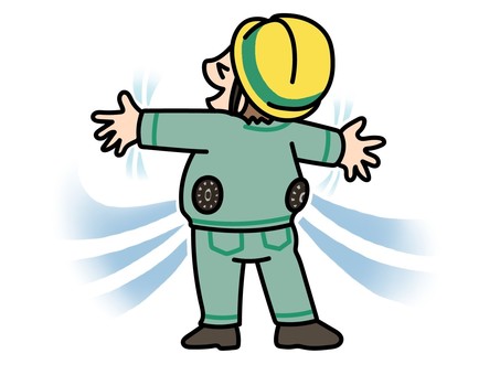 私が使用しているものはベスト型の空調服で、内部ポケットにバッテリーを入れ、その電源からファンを回しベスト内に風を充満させます。